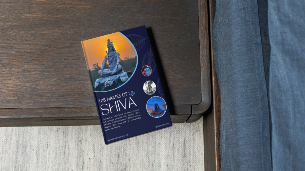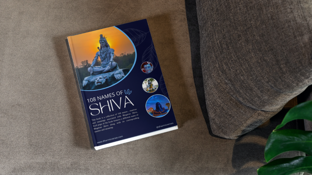 The book "108 Names of Shiva" is a collection of 108 names , mantras and meanings associated with Bhagwan Shiva. Each page of the book features a different name of Bhagwan Shiva along with its corresponding mantra and meaning.